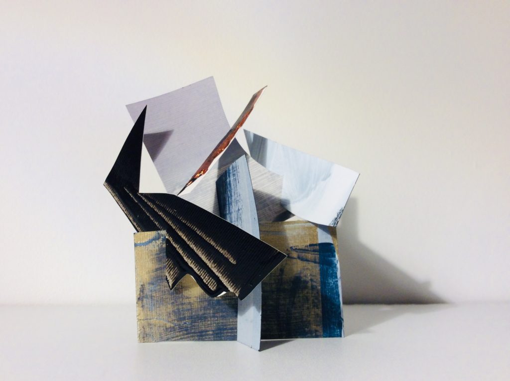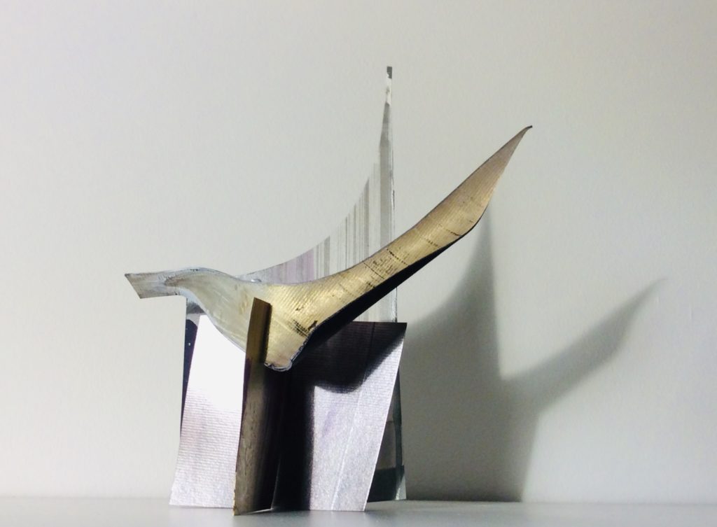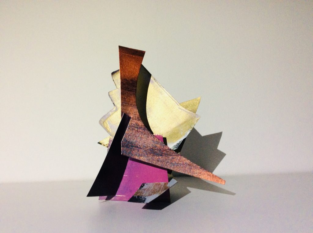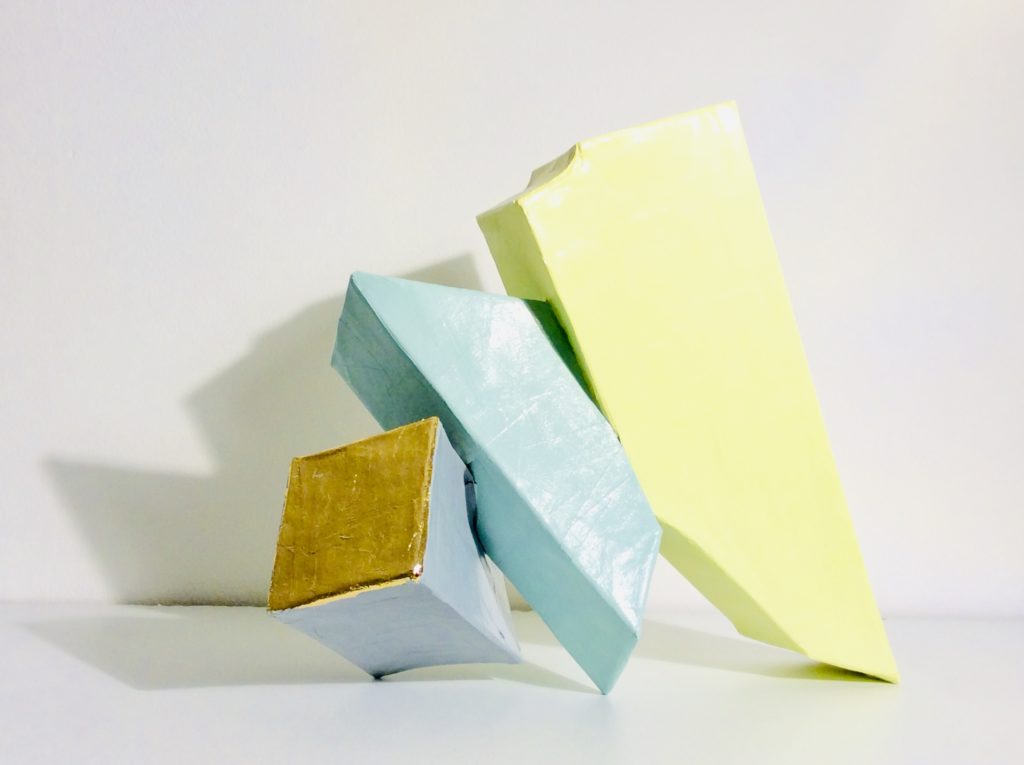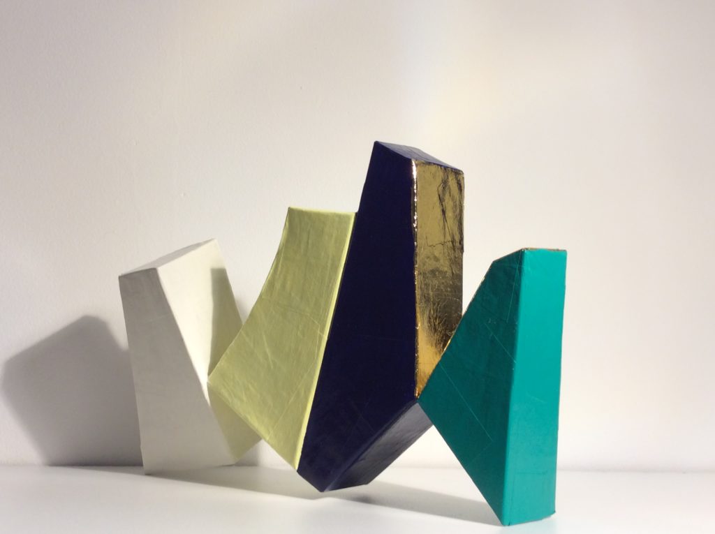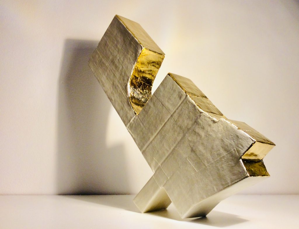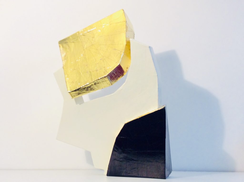 cardboard, gum tape, gloss paint, 24 carat gold leaf, 11in x 10in x 2in, 2020